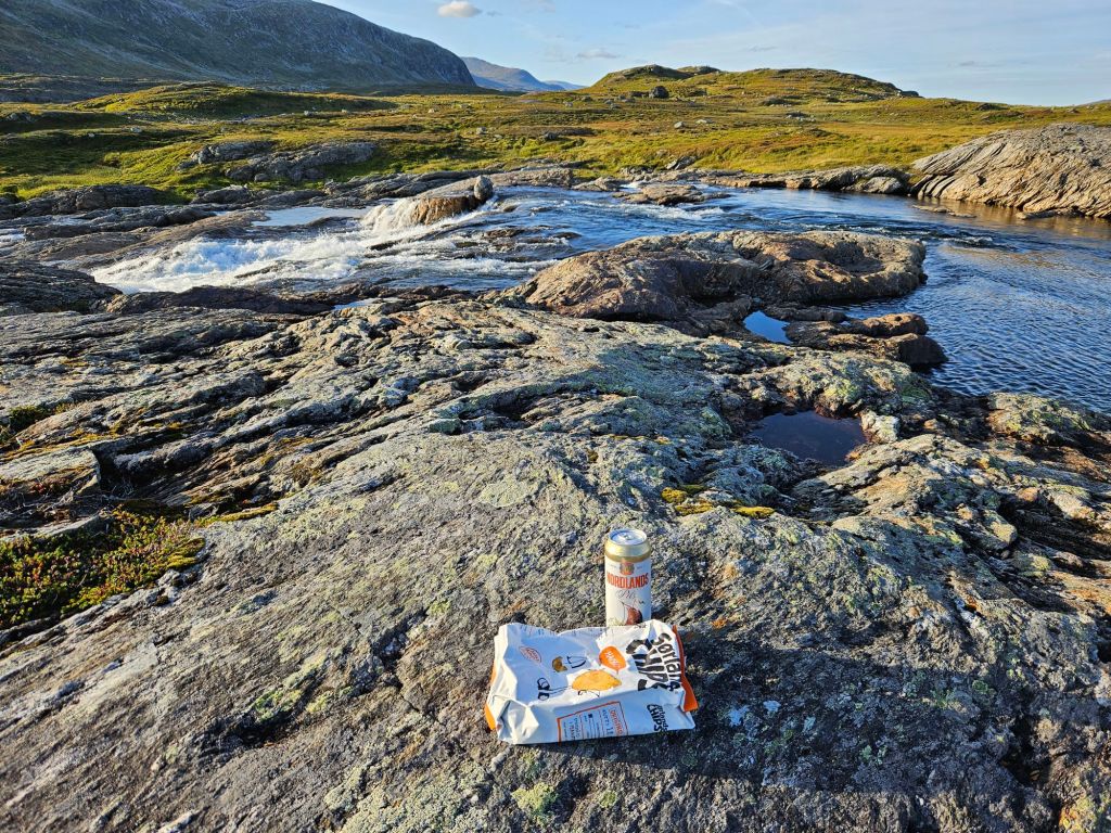 Und jetzt endlich kann ich geniessen, was ich raufgeschleppt habe: Sørland (Chips) meets Nordland (Bier)!