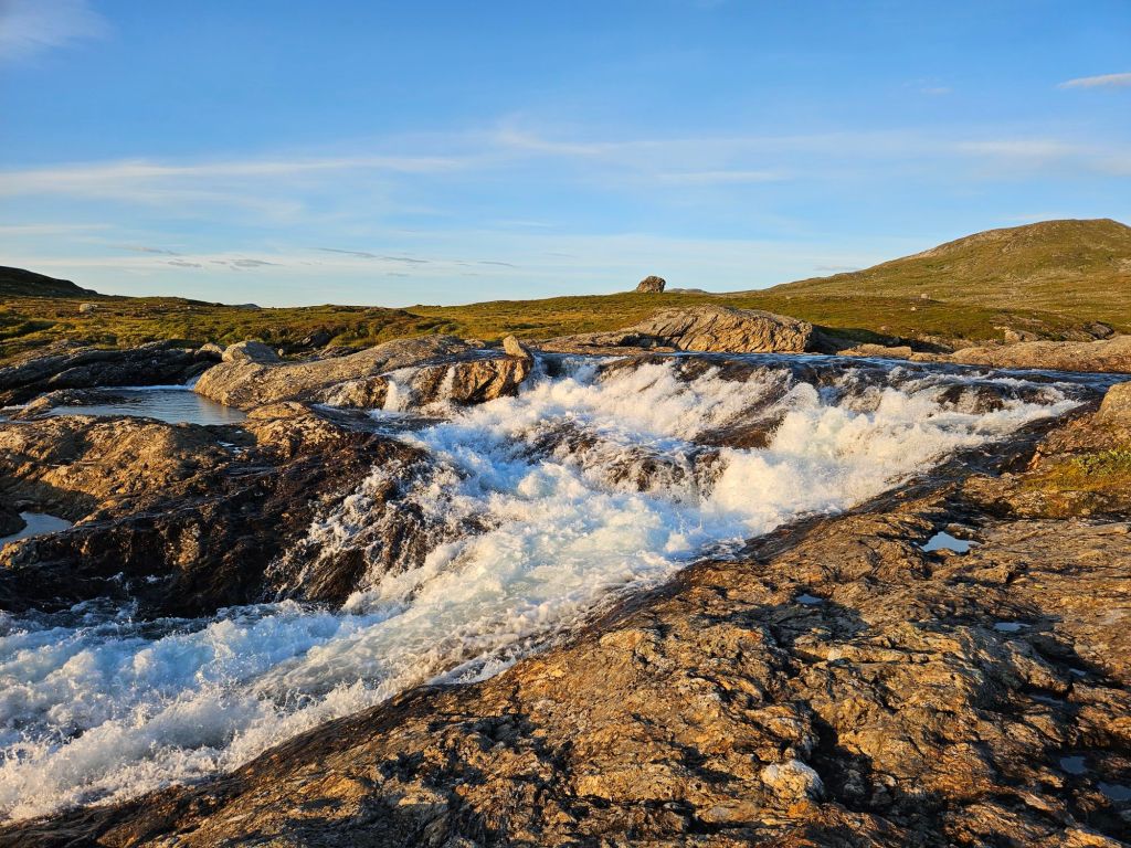 Nach knapp 34 Km entdecke ich den perfekten Platz an einem Wasserfall des Kjukkelelva.