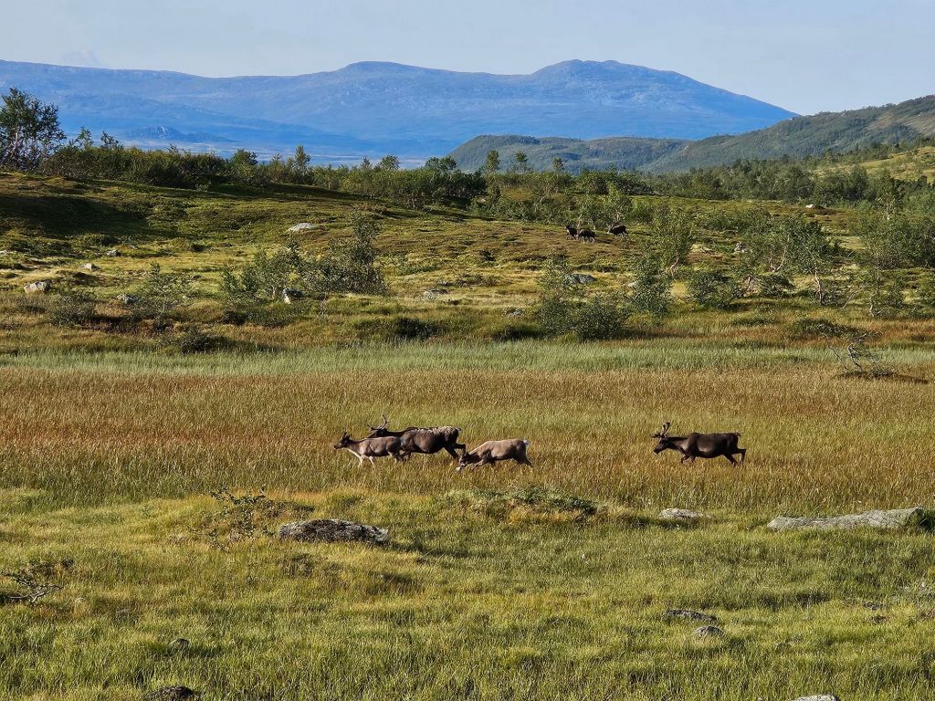 Die unendlichen Weiten und die hunderschaften Rentiere (im Børgefjell sind rund 5000 Rentiere gesömmert!), faszinieren mich Schritt für Schritt. Je höher dass ich komme, umso einfacher ist das Terrain zum laufen. Auch wenn es keine Wege gibt hier, ist die Navigation bei dem Traumwetter spielend einfach.
