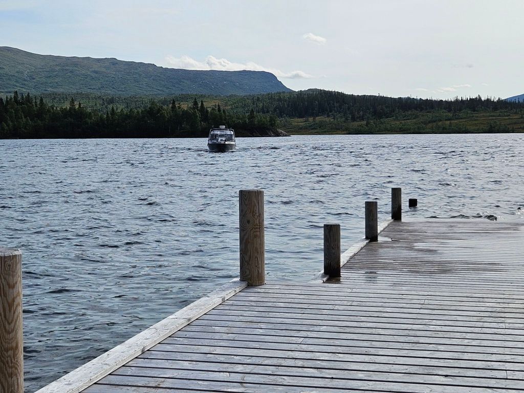 Während der Fahrt erzählt mir Rolf viel über die letzten sechs Jahre seit er den Bootsbetrieb übernommen hat. Rolf ist ein purer Enthusiast und macht seinen Job mit voller Hingabe und Freude. Zugleich stellt er mir Elisa vor, welche auch im Boot ist mit ihrem Sohn. Sie ist 96! und war früher die Pfarrerin in der am Nordufer liegenden kleinen Kapelle Kristi Krybbe. Sie besitzt immer noch fünf Häuser rund um den See und fährt immer wieder mit ihrem Sohn raus um zum rechten zu sehen. Ein kleines gut gemeintes Bombardement an Bibelsprüchen übergiesst sich mir und mein Heiligenschein wird zurechtgerückt. Die Überfahrt hat sich nun definitiv gelohnt 😉