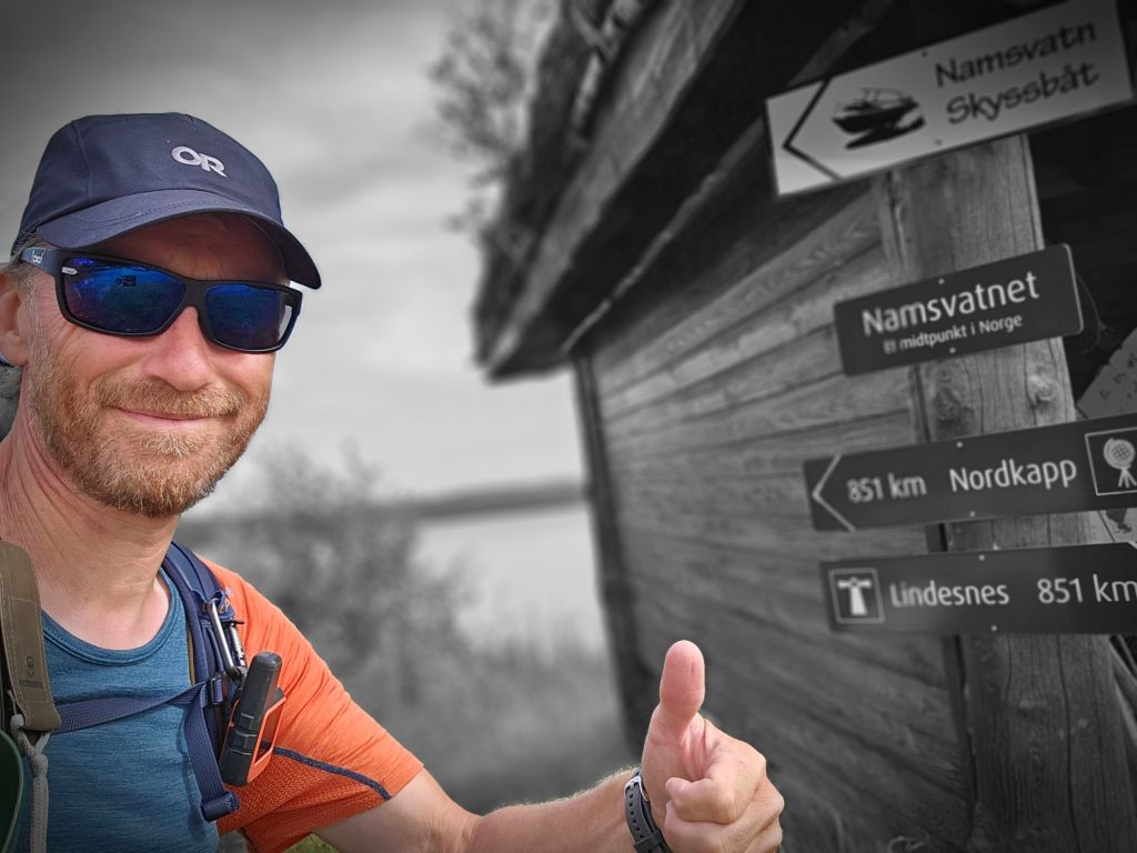 Da ich nicht vom Nordkap gestartet bin, habe ich meine Hälfte schon länger hinter mir, aber es ist ja auch nur Luftlinie!