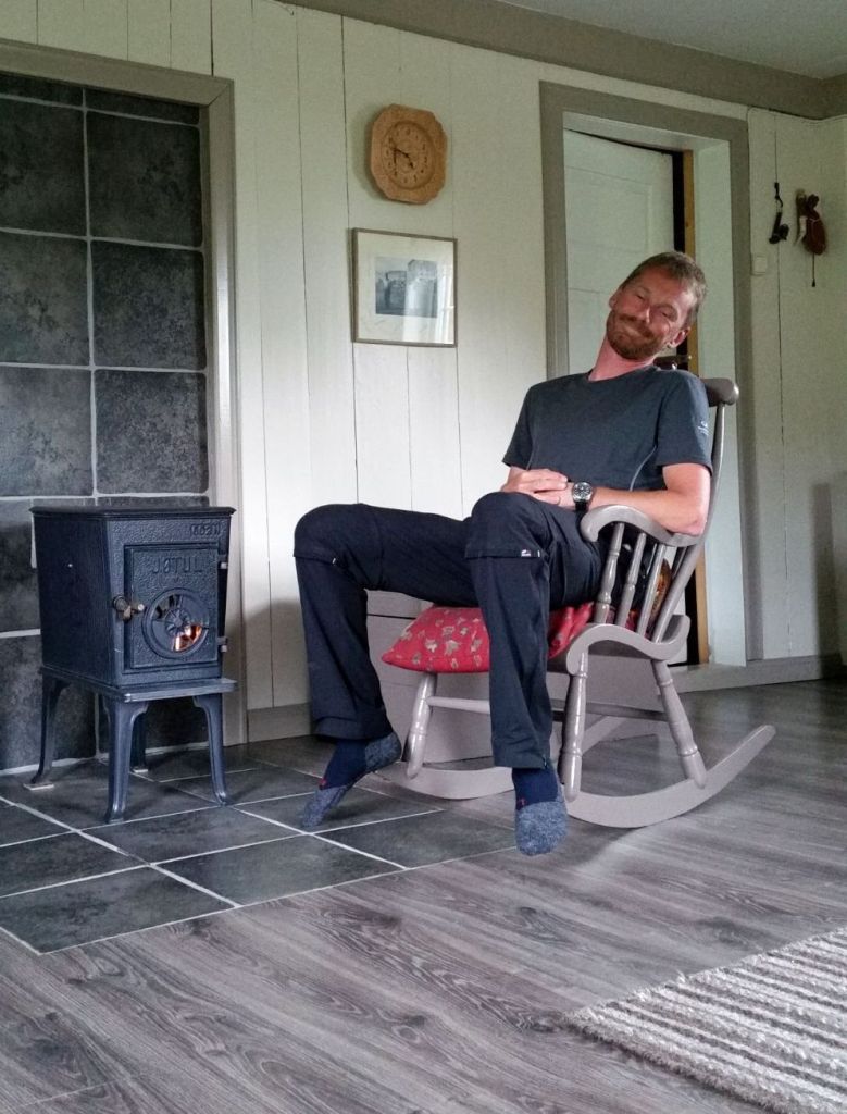 Ich bin klitschnass aber kann mich wohl auf eine warme Hütte freuen, denn Tobi ist mir nicht entgegengekommen und da wir keinen Mobilfunknetzempfang haben, rechne ich damit dass er noch hier in der Statskoghütte Krutvatnet ist …ist er!