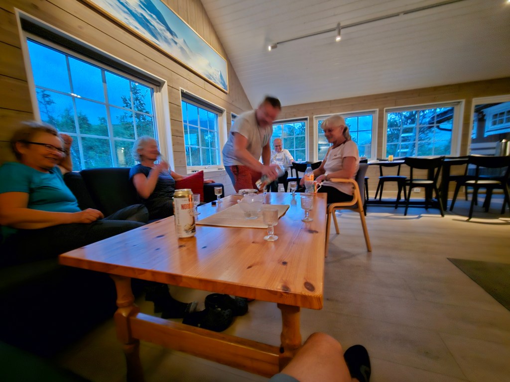Die Eltern des Jungen kommen auf Besuch und bringen ihnen für ihre drei Ruhetage hier, ziemlich viel zu essen und trinken mit. Und so sitze ich nach einer heissen Dusche schon wieder mit einem Bier in der Hand und vollem Bauch am Tisch und frage mich gerade…warum ich soviel eingekauft habe in Mo i Rana. Soviel Gastfreundschaft ist echt überwältigend und rührt mich.