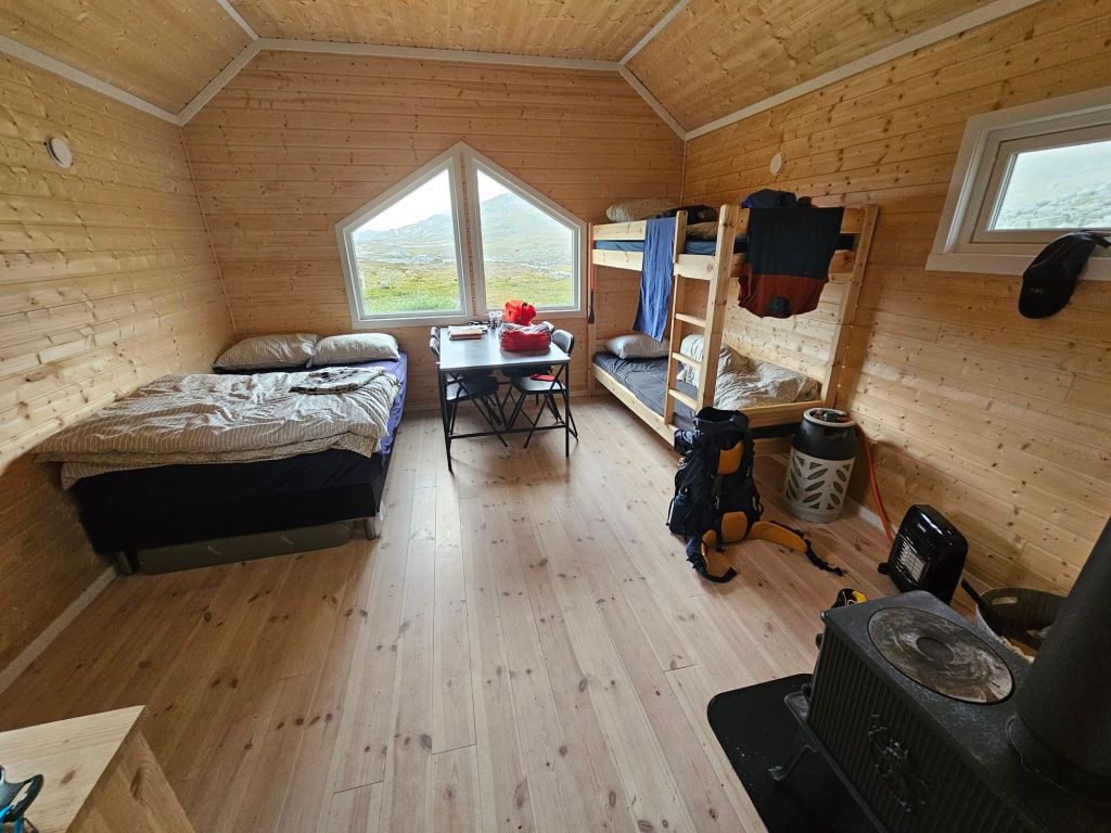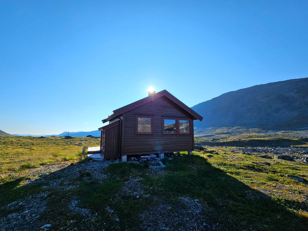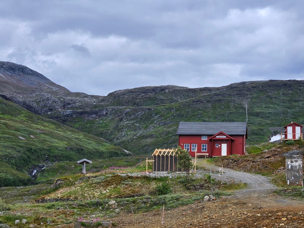 Früher war hier eine Nothütte die eigentlich nicht für Übernachtungen vorgesehen war. Die neue Hütte jedoch schon und die liegt gerade perfekt für mich auf dem Weg ins Narvikfjell.