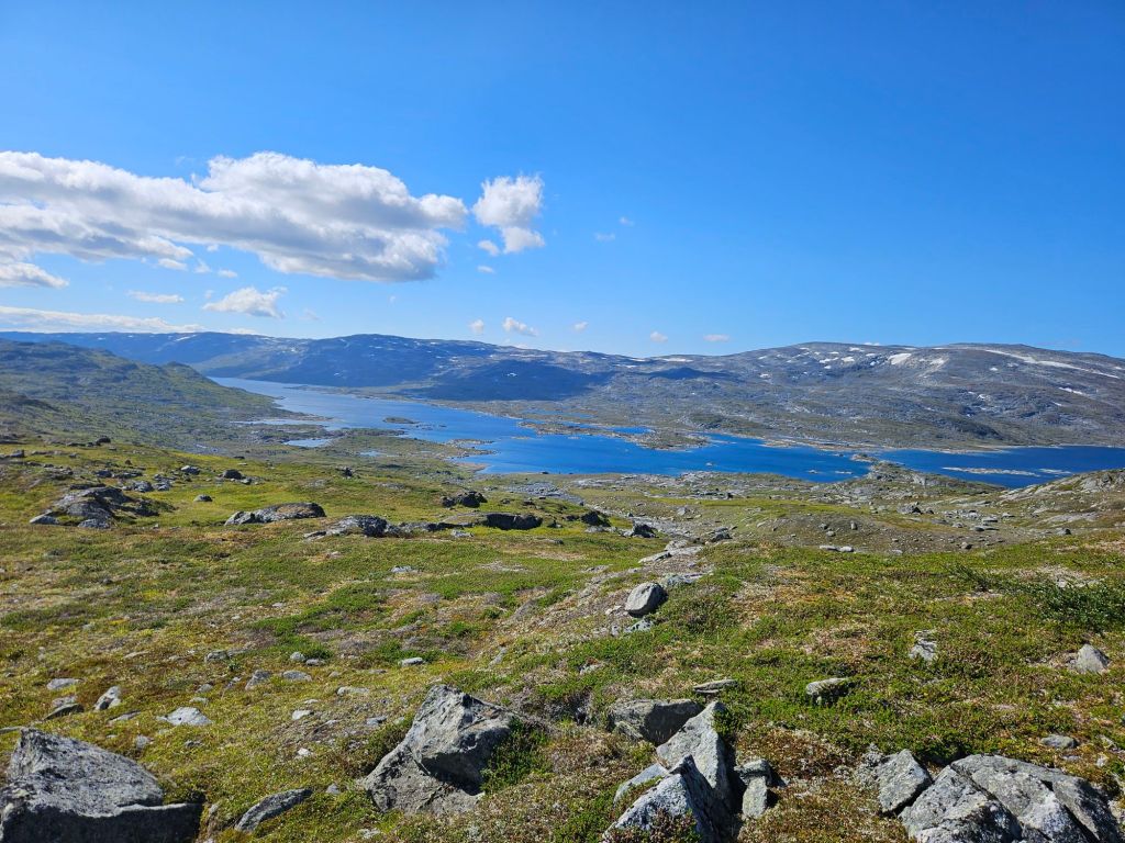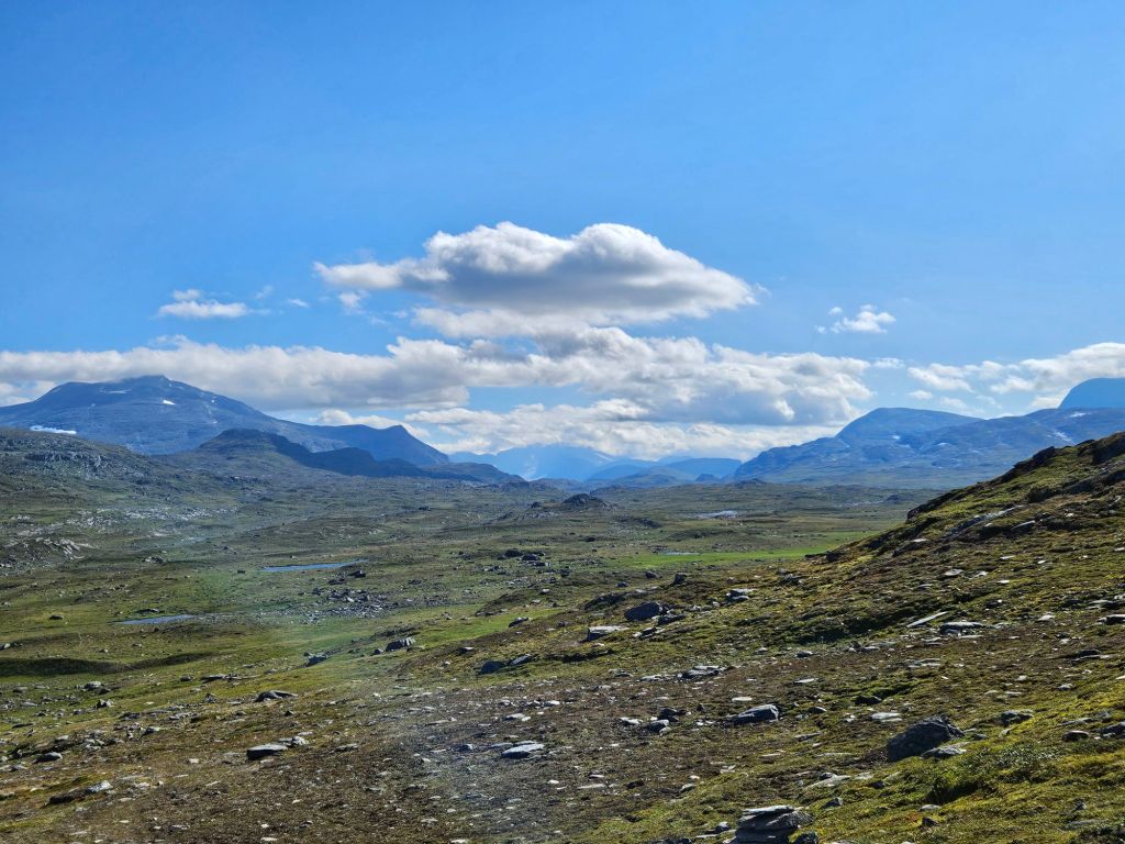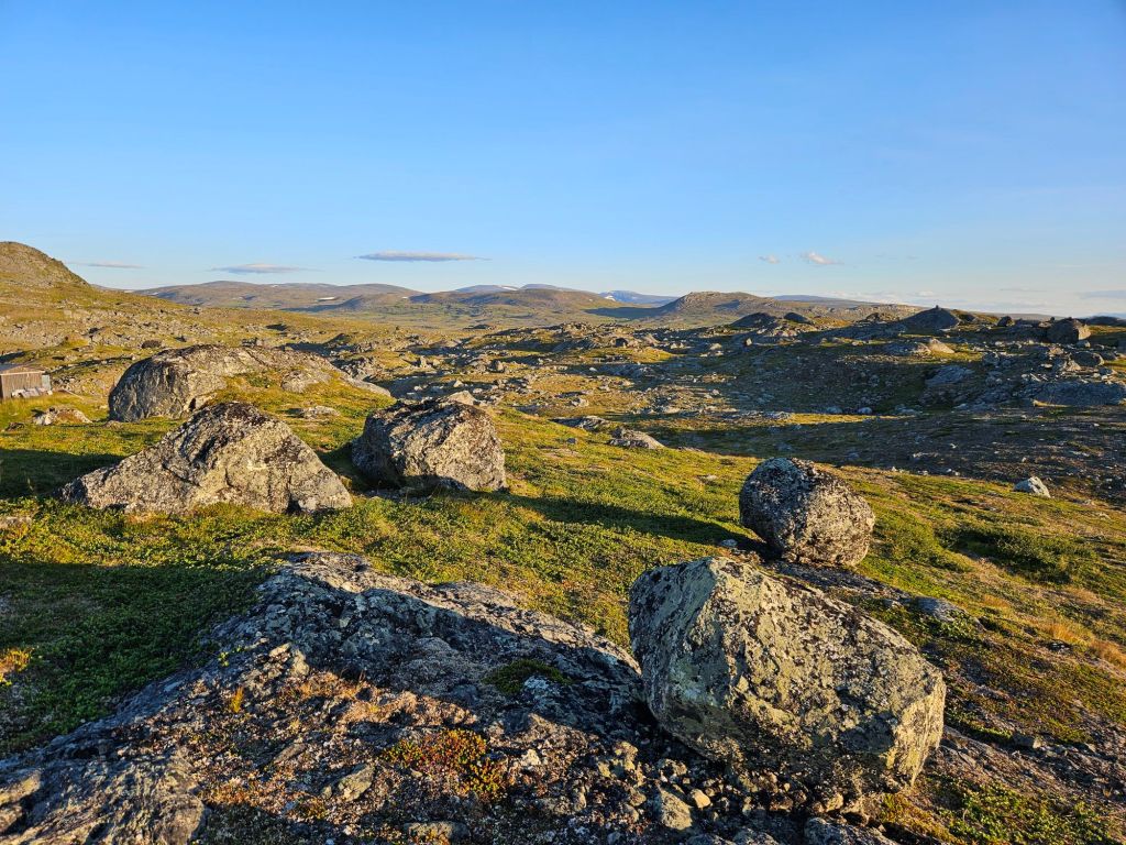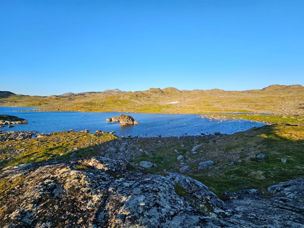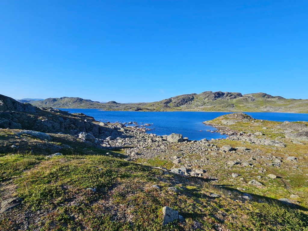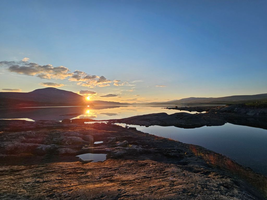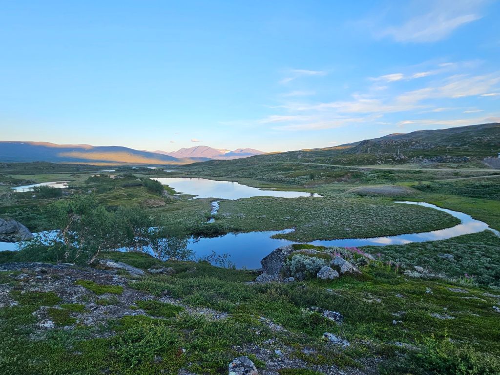 Das Wetter ist mittlerweile der Hammer und es ist richtig heiss hier oben. Zum Glück geht ein leichtes Lüftlein, gerade gut genug, um die Quälgeister 🦟🦟 am Boden zu halten. Obwohl ich mich Mückenmässig keine Sekunde beklagen darf seit der Finnmark. Es ist schon erstaunlich wie wenig Mücken es hier hat. Es war im Frühling einfach zu trocken südlich des äusseren Nordens.