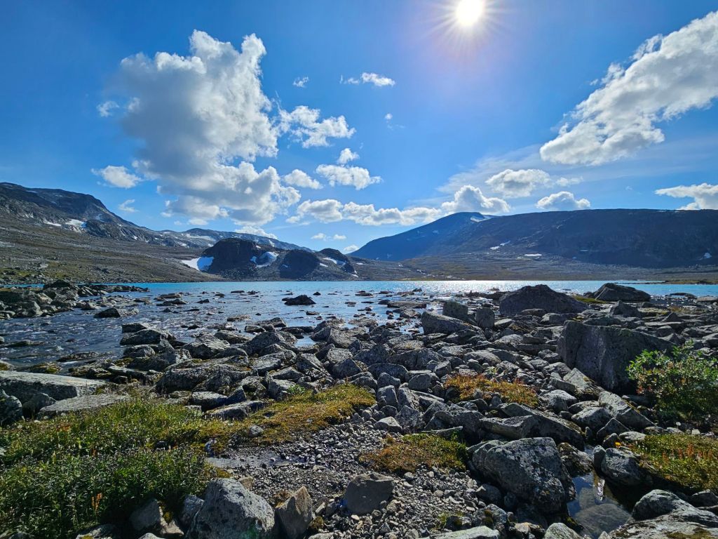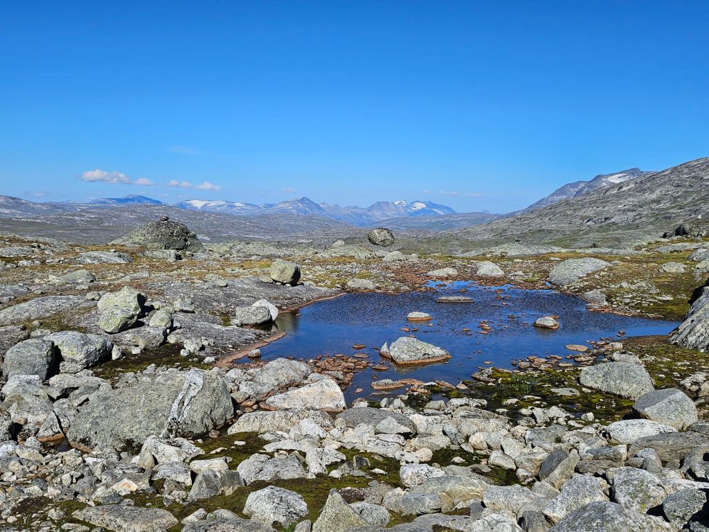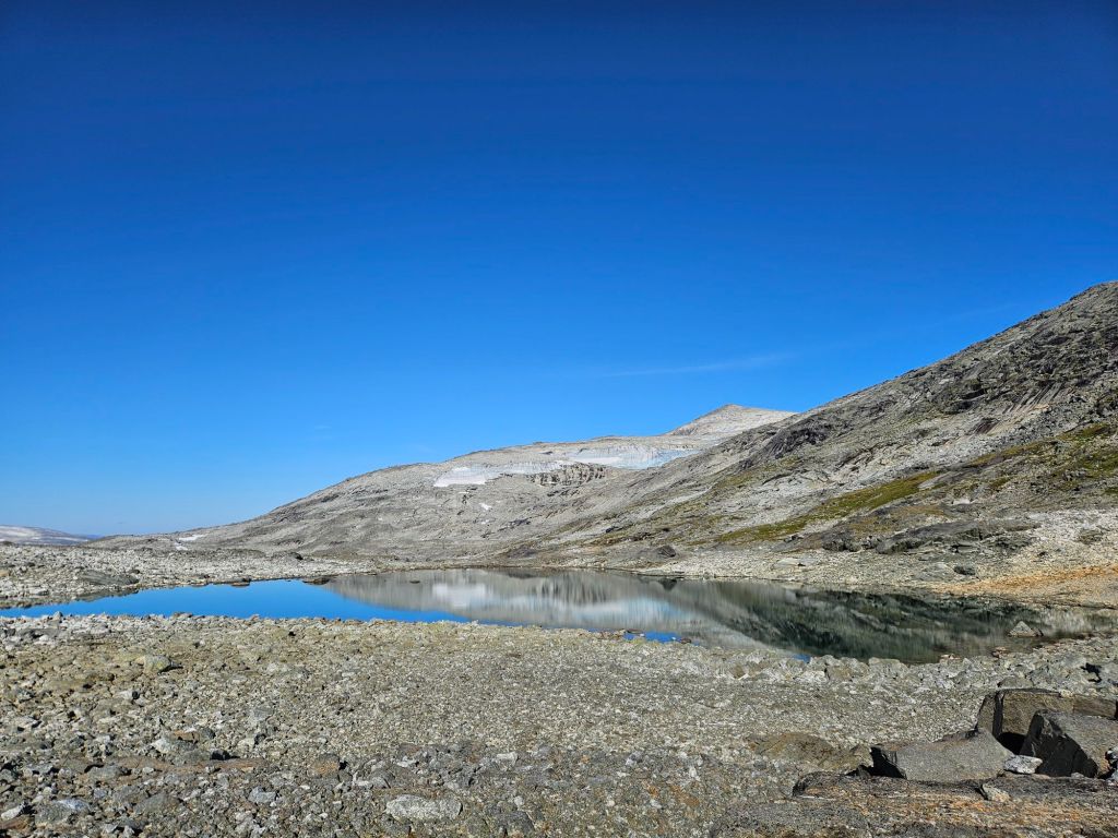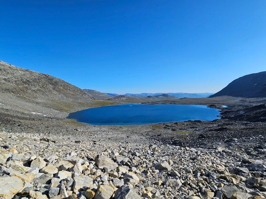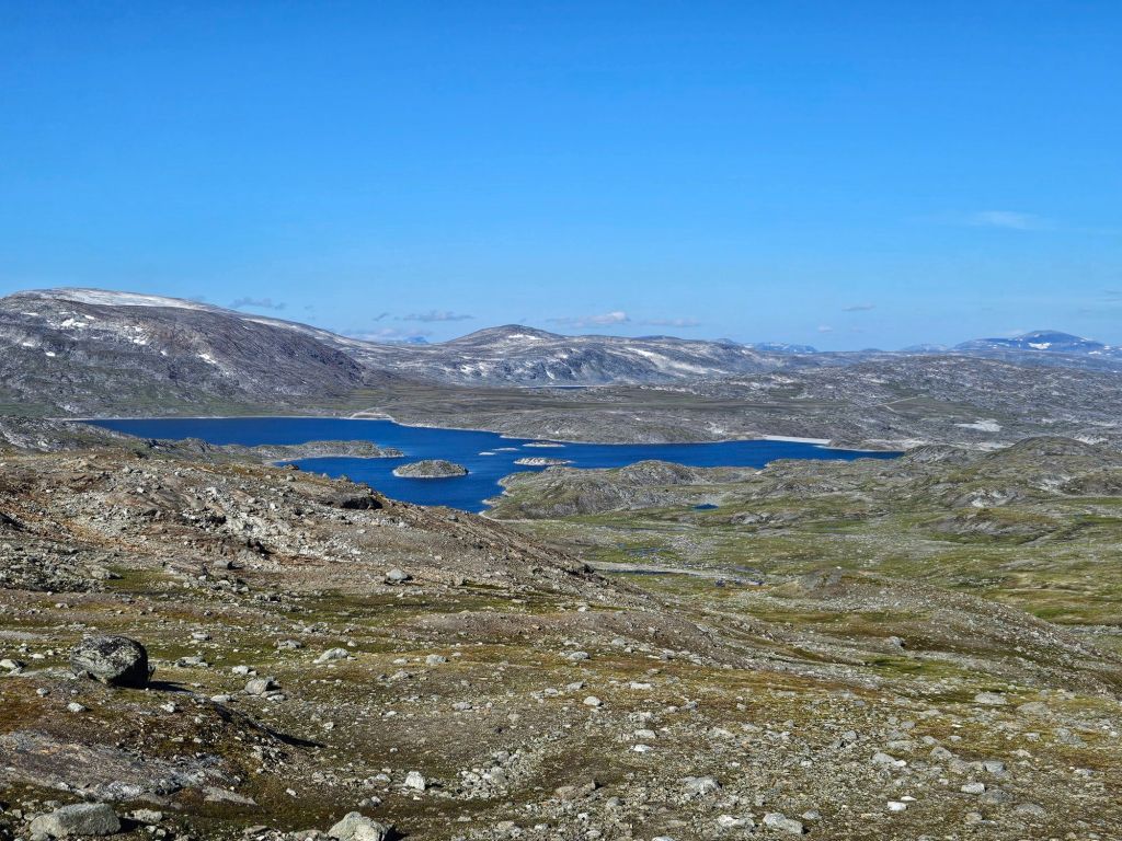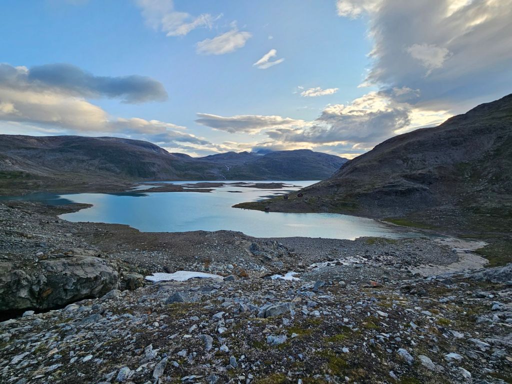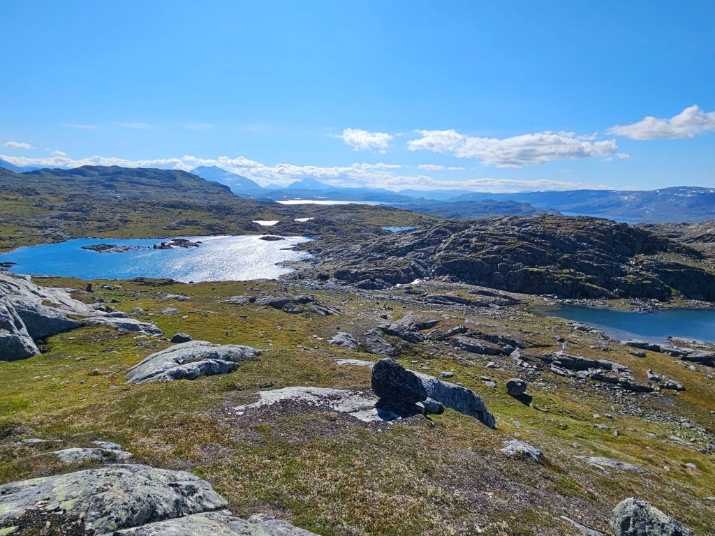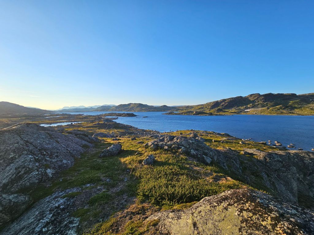 Das Wetter ist mittlerweile der Hammer und es ist richtig heiss hier oben. Zum Glück geht ein leichtes Lüftlein, gerade gut genug, um die Quälgeister 🦟🦟 am Boden zu halten. Obwohl ich mich Mückenmässig keine Sekunde beklagen darf seit der Finnmark. Es ist schon erstaunlich wie wenig Mücken es hier hat. Es war im Frühling einfach zu trocken südlich des äusseren Nordens.