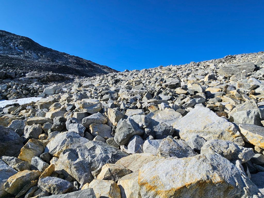 Mia hat gerade ziemlich was um die Ohren. Ihr Solarpanel geht nicht mehr, vermutlich ein Blitzschaden und all ihre Batterien sind leer. Die STF Hütten sind seit diesem Jahr an das Starlink-Satelliten System angeschlossen und somit kann nun auch mit Kreditkarten überall bezahlt werden….wenn es Strom hat. Aber jetzt hat sie nicht mal mehr Kontakt zum STF und hinzu kommt noch ein verletzter Fuss, bei dem sie sich nicht sicher ist, ob etwas gebrochen oder angerissen ist. Da sie aber einen Hubschrauberflug selber bezahlen müsste, möchte sie eigentlich runterlaufen, aber ob das geht?