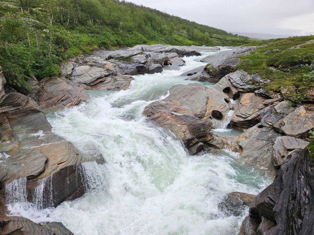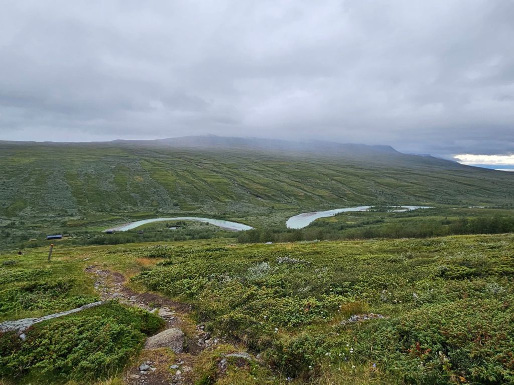 Schon länger ist mir aber aufgefallen, dass es gar nicht so viele Leute hat obwohl Hochsaison ist. Die Hüttenwarte sagen mir, dass sie 60%! weniger Buchungen haben als letztes Jahr. Fast durch das Band bekommen sie von den übrig gebliebenen Gästen erklärt, dass es am katastrophalen Buchungssystem der schwedischen Bahn hängt. Dort muss diesen Sommer alles den Bach runtergehen und rein nichts funktionieren. Etwas, was ich schon mehrere Male gehört habe die letzten Tage.