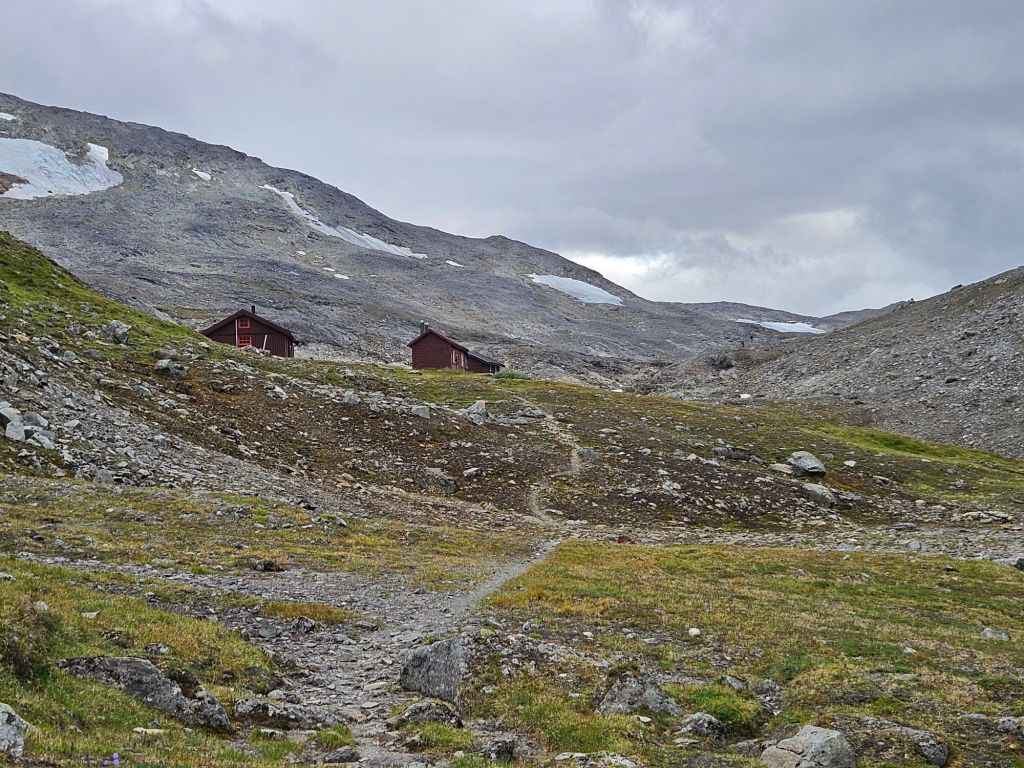 Schon bald erreiche ich die DNT Hütte Ny Sulitjelma und somit auch das Zufahrtsträsschen aus dem Tal.