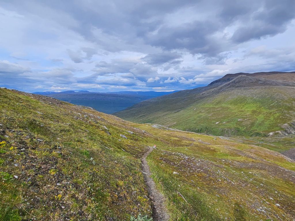 Nach den Brücken steigt der Weg c.a. 300 Höhenmeter an und eröffnet gewaltige Blicke auf den See Vastenjaure.