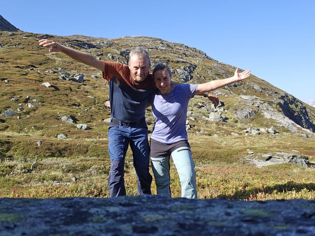 „Jetzt bist du alleine in den Jahren 13/15 von Süd nach Nord gelaufen, 2024 nun von Nord nach Süd. Wann laufen Anja und du Norge på langs zu zweit?“