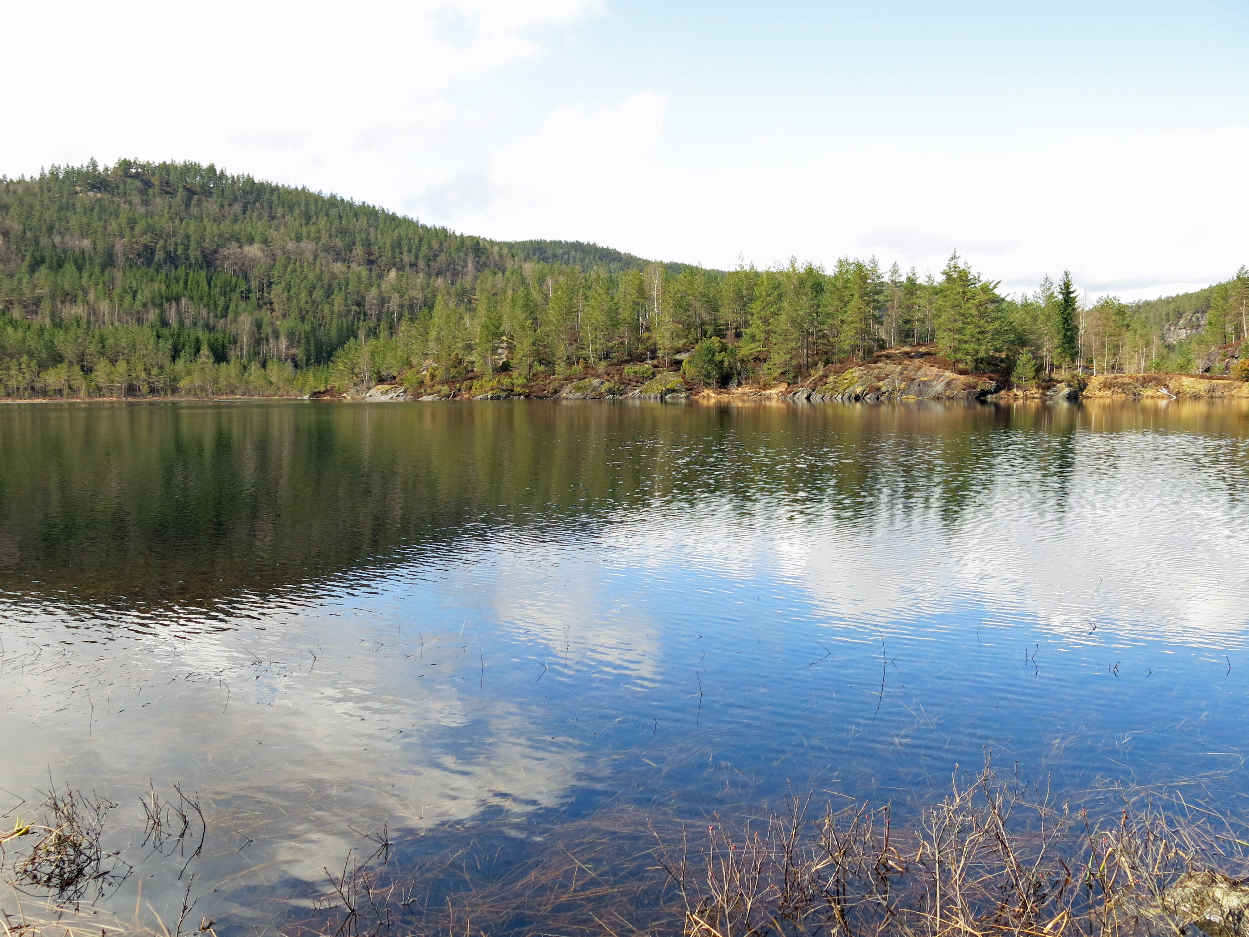 Am Myra Camping habe ich eine kleine Hütte gebucht um meinen Rucksack umzukrempeln, von flugtauglich auf lauftauglich. Die ersten paar Kilometer lassen mich aber nun schon erahnen, was mir die nächsten 2700 Kilometer wohl bieten werden. An das Gewicht muss man sich wohl schon gewöhnen müssen. Nach einer hervorragenden Nacht im warmen Haus und dem umorganisieren meines Gepäcks, laufe ich nun los Richtung Vigeland. Ich weiss schon im Vorfeld der Tour, dass mein früher Startzeitpunkt Mitte Mai ein gewisses Risiko bergen wird, was die Wege anbelangt. Und es ist mir auch bewusst, dass ich wohl viele Routenänderungen unterwegs machen müsste, falls sich z. B. die Schneesituation nicht frühzeitig entschärft. Aus diesen Gründen wähle ich meine Südroute auch östlicher als „normal“. Die Setesdalsheja lasse ich schon von Anfang an aus, werde aber noch weiter östlicher gehen um einen Besuch in Nissedal zu machen, einem Ort welchen ich in den letzten Jahren immer wieder besuchte. Auch ist die Hardangervidda zu diesem frühen Zeitpunkt höchstens auf der Ostroute ab Rjukan – Geilo zu machen, und Jotunheimen ist mit seinen über 1500 Höhenmetern auch schon fraglich. Da ich keinerlei Winterausrüstung mitnehmen wollte (Ski, Schneeschuhe usw.) ist mir klar, dass die Schneeverhältnisse gut sein müssen, um diese Gegenden durchqueren zu können. Die Route ist also sehr offen und lässt mir viel Spielraum zum improvisieren, deshalb lege ich auch nur sehr wenige Depotstellen an. Das erste Depot ist in Nissedal / Telemark.