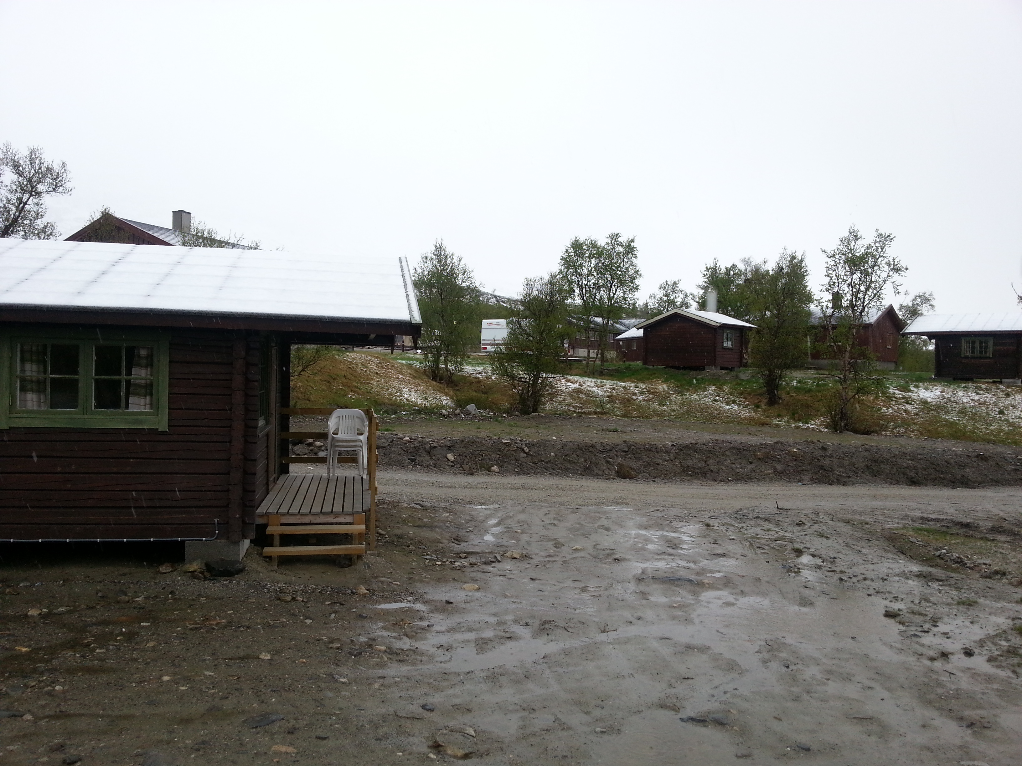 Ich bin nicht sicher ob ich jemals so viele Waffeln auf`s Mal verdrückt habe wie hier in Furuhauglie, aber sie waren wirklich mehr als lecker! Die Nacht kommt und es wird deutlich kälter. Am Morgen erwartet mich dann tatsächlich ein Schäumchen Schnee und es schneit tatsächlich immer noch, brrrrrrrrr…..! Der warme Schlafsack ist nicht zu verachten und so entscheide ich mich nochmals zurück in die warme „Höhle“ zu kriechen und mein weitergehen etwas nach hinten zu schieben. Da ich nur nach Hageseter oder Hjerkinn laufen will, kann ich den Tag etwas gemütlich angehen.