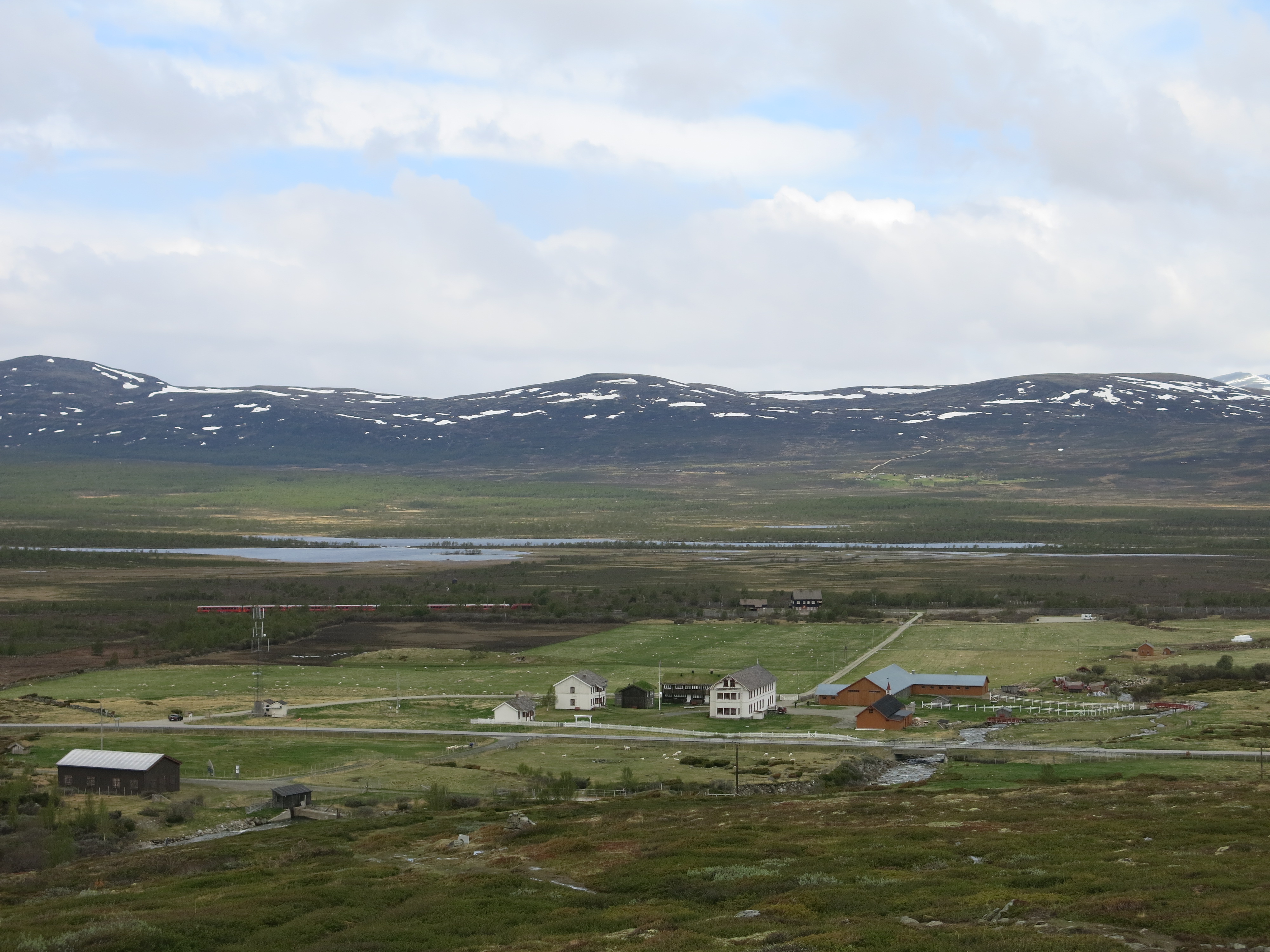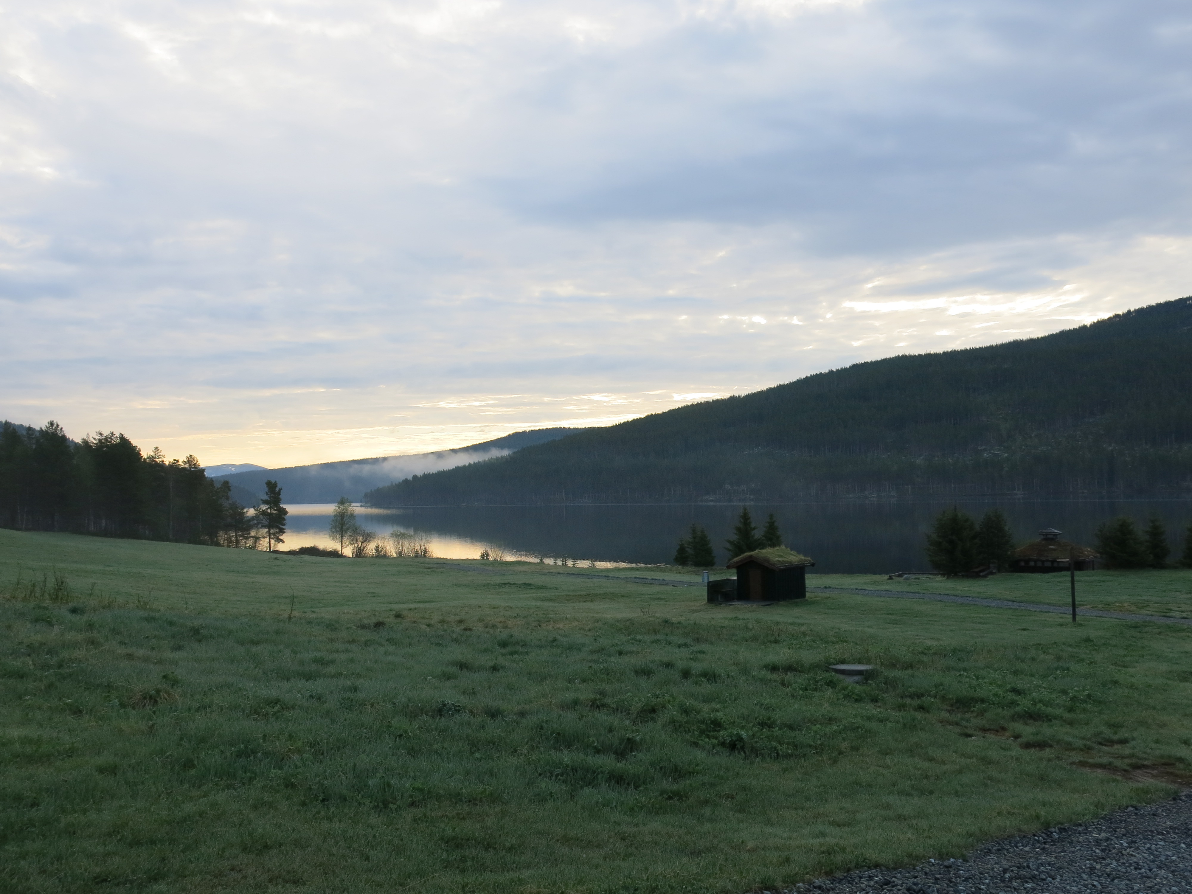 Der Weiterweg ist dann ein ununterbrochenes „Geplätschere“ der Strasse nach, und schneller als ich dachte, erreiche ich Dovre und danach Dombås. Hier beziehe ich ein Zimmer in einem Motel, den ich habe genug Wasser über den ganzen Tag gesehen und gespürt. Kaum angekommen, reisst der Himmel auf und die Sonne lässt auch mein Gemüt wieder etwas erstrahlen.