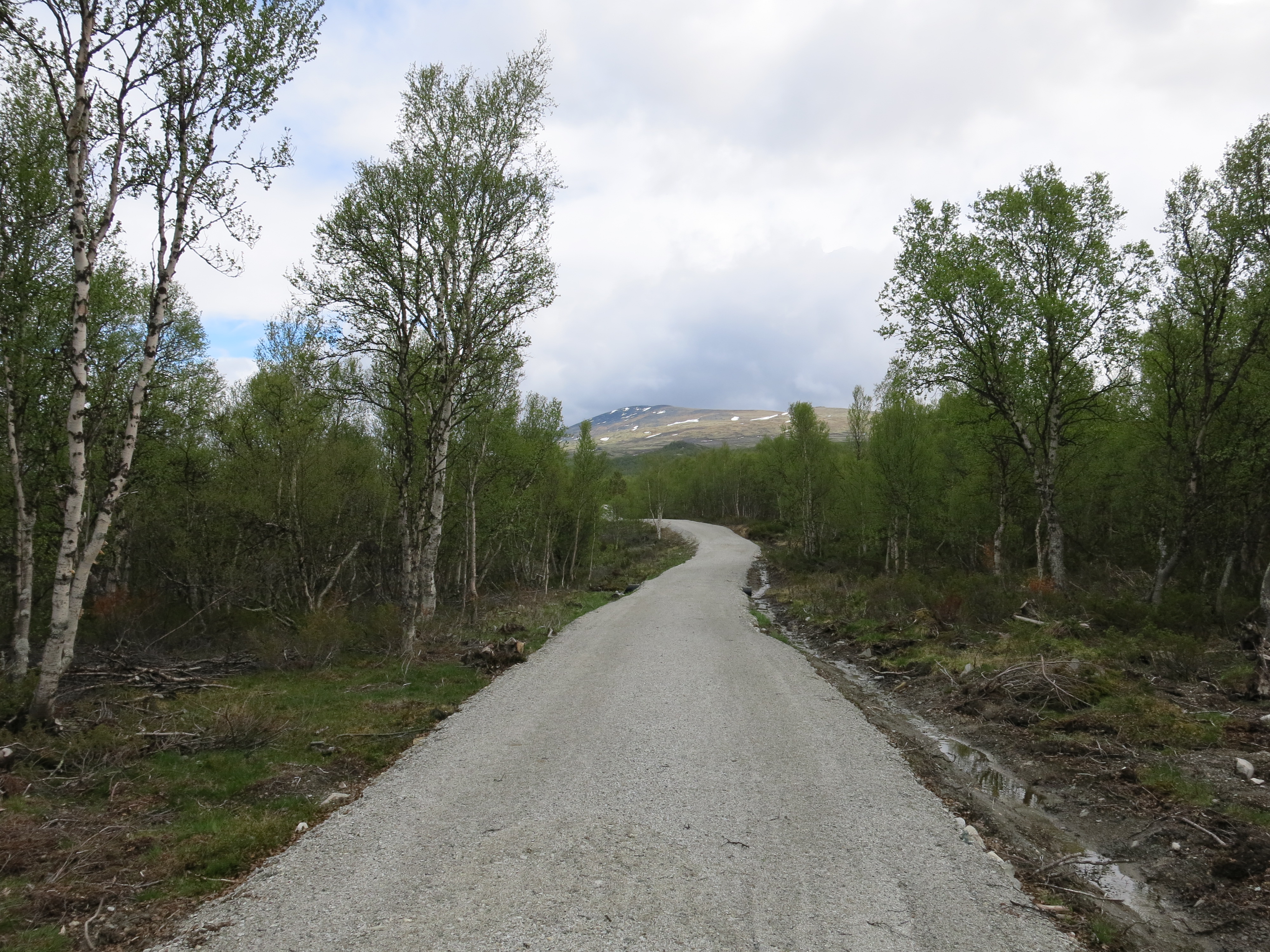 Am nächsten Morgen laufe ich früh los um dem angekündigten Regen ein Schnippchen zu schlagen. Ziel ist Dovre oder vielleicht schon Dombås wo ich mir dann einen Ruhetag gönnen will. Nun ja, lange geht es nicht und der Himmel öffnet sämtliche Schleusen.