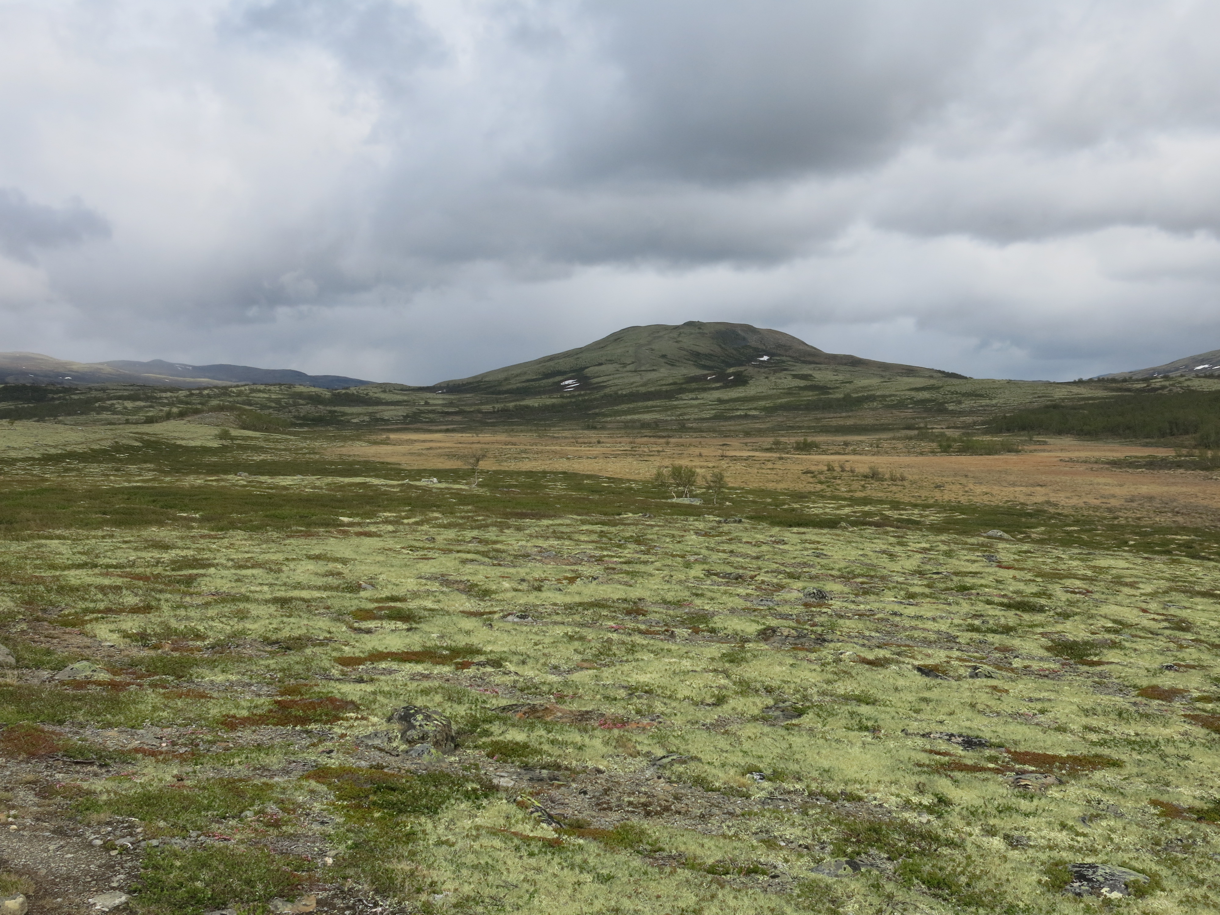 Noch am Abend frage ich mich, soll ich vielleicht ein paar Tage mit ihm Richtung Trondheim laufen? Mein nächstes Depot ist in Haltdalen, dass sich nördlich von Oppdal befindet. Doch es scheint mir ein zu grosser Umweg und ich entscheide mich den Weg über Folldal, Tynset und Tolga nach Rorøs zu gehen. Ich war noch nie in Rorøs, und viele Leute rühmen dieses Kleinod im Norden, das will ich nun auf meiner Reise besuchen. Ursprünglich war ja geplant von Folldal direkt nördlich in den Forollhogna National Park zu gehen, dieser Park liegt direkt an Haltdalen gelegen. Doch Forollhogna ist praktisch weglos und ist ein geschütztes Hochmoorgebiet. Hochmoor heisst eben Moor, und dies ist bei dieser Nässe kaum empfehlenswert zu begehen, also Røros!