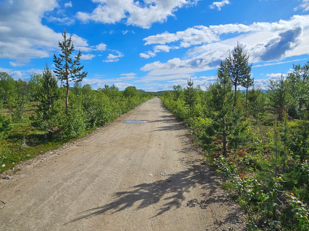 Terri hat mir erzählt, dass die Kieferwälder der Rückzugsort der Rentiere im Winter sind. Hier sind sie vor der klirrenden, schneidenden Kälte, welche aus Sibirien kommt, etwas geschützt. Diesen Winter hatten sie bis -50 Grad. Über den Hügel rüber auf die Westseite (c.a. 25 Km) waren es unter Einfluss des Golfstromes, durchschnittlich -10° bis -15°! Man kann sich auch nur annähernd vorstellen, wie hart das hier im Winter sein muss.