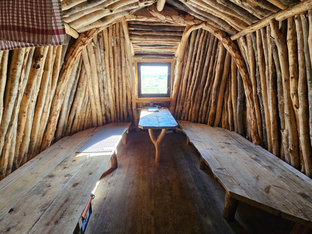 Wow…das habe ich nun nicht erwartet. Liegt wohl auch daran, dass diese Gammen nun im Besitz des National Parks ist und somit auch gepflegt wird. Die Konstruktion ist schon eindrücklich. Keine Schraube, kein Nagel braucht es für die Gammen. Hier fühle ich mich gerade so wohl, dass ich mich für die „Nacht“ einquartiere, denn hier hat es kaum Mücken und es wird etwas weniger sonnig!