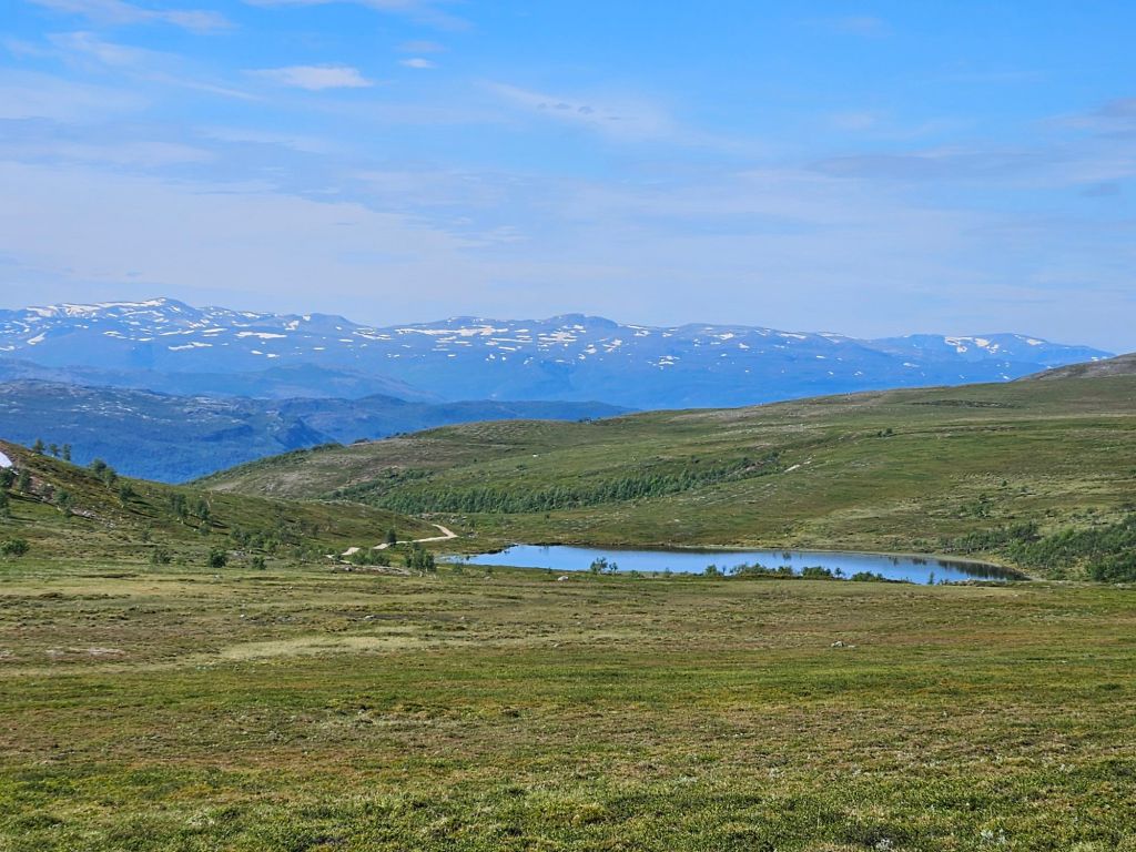 Schon auf dem Gipfel habe ich über dem Nábár ein paar Cumulus Wolken festgestellt. Kein Wunder bei der Hitze. yr.no, die norwegische Wetterseite, meldet erst für morgen heftige Gewitter im Gebiet und da bin ich ja im Hotel.