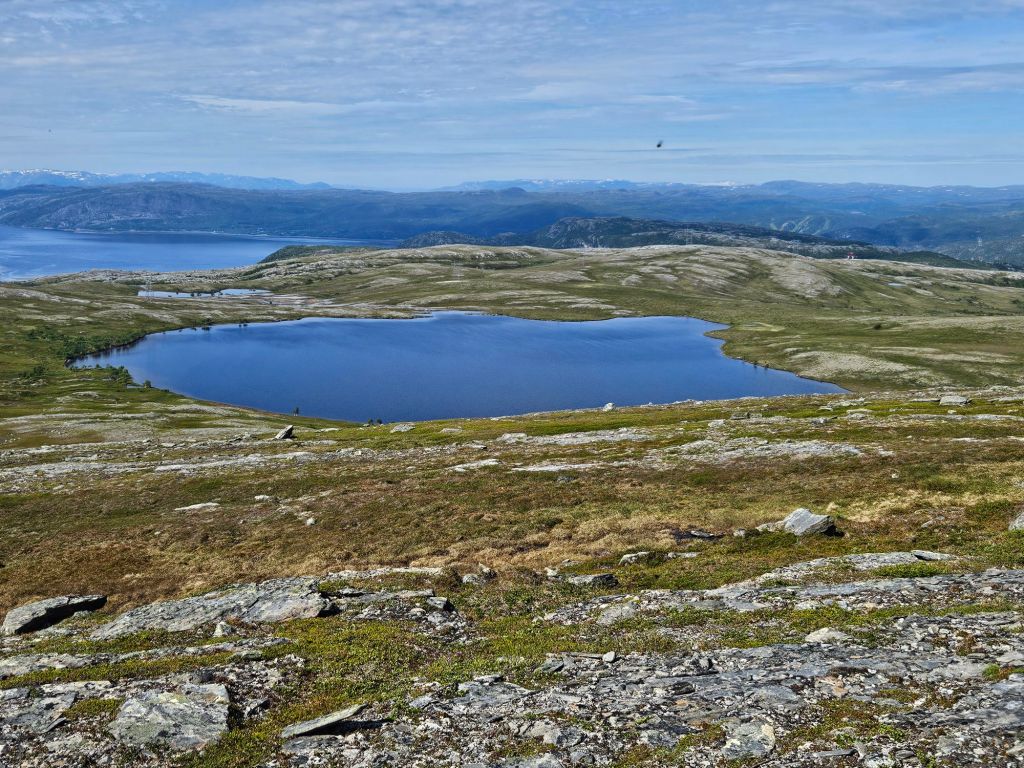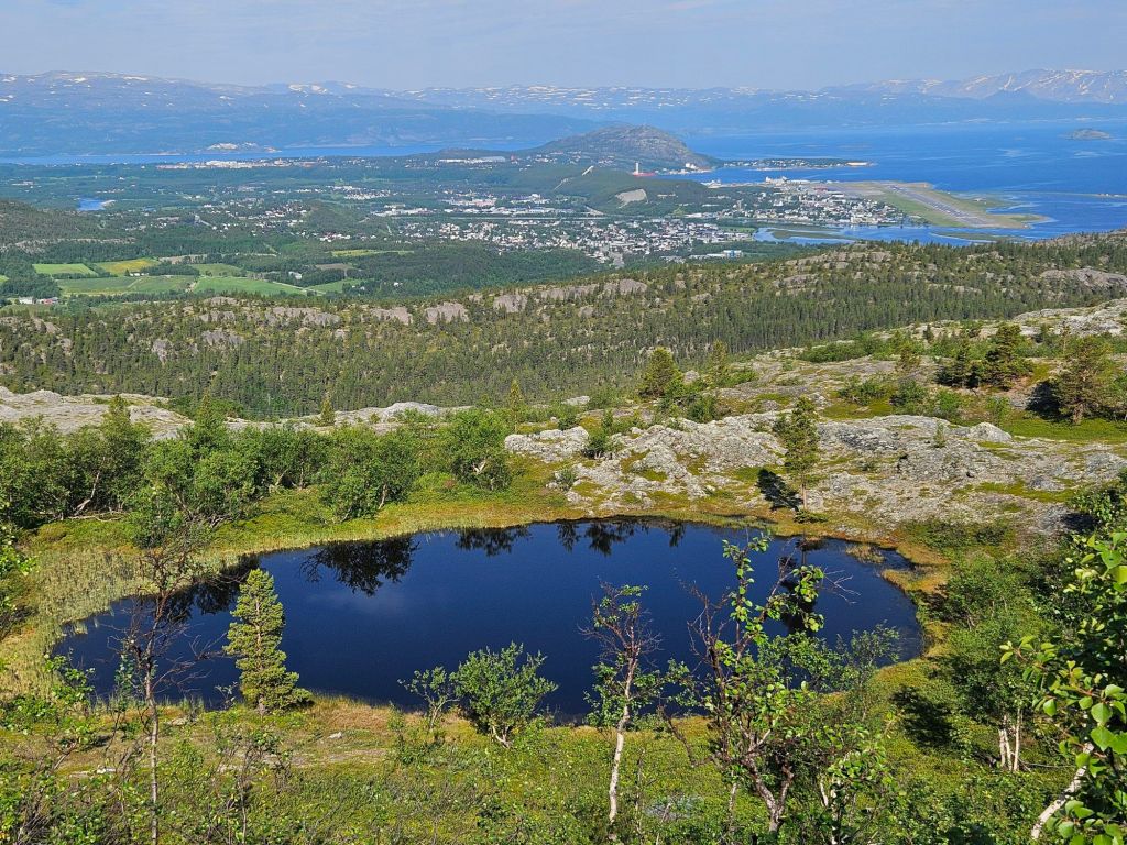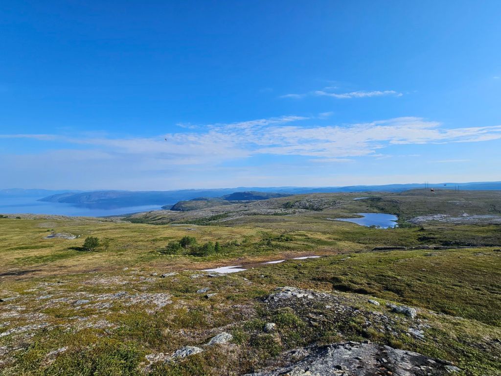 Die Aussicht ist 360° gewaltig schön. Im Westen die Stadt und die Lyngen Alpen, das Nábár im Süden, im Osten Stabbursdalen und im Norden Sennalandet und die Porsanger Halbinsel, ein Traum!