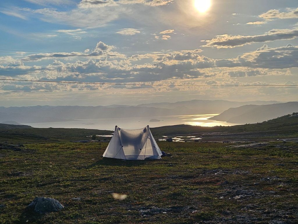Mit einer Tagesetappe von 40-42 Kilometer könnte ich heute noch Alta erreichen. Doch ich bin zeitlich super dran, die Hitze hat auch gerade etwas Tribut gezollt und ich habe heute auch noch eine „letzte“ Chance, die Mitternachtssonne zu sehen. Nachher bin ich weg von der Küste, im hügeligen Gelände, und da sind die Chancen gering. (Irgendwie lustig…alle die nach Norden laufen, lechzen im Herbst nach den Polarlichtern und alle die gegen Süden laufen, wollen die Mitternachtssonne vor dem Zelt sehen. Beides werden aber etwa die Hälfte kaum oder nur wenig zu Gesicht bekommen). Ich habe zum Glück beides schon oft gesehen. Aber wenn sich die Möglichkeit ergibt… und das Wetter dazu habe ich ja.