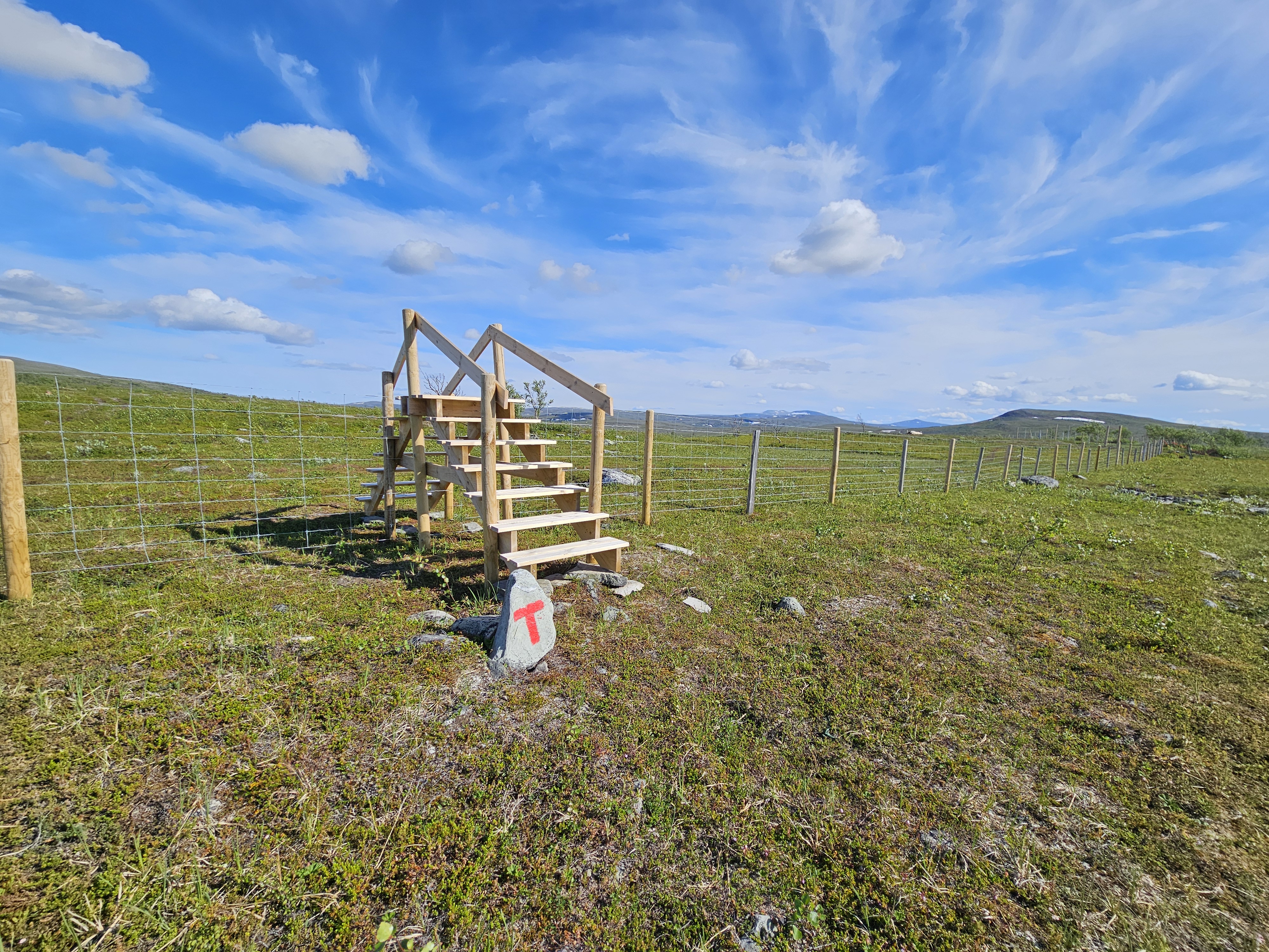 Immer wieder treffe ich auf Holzstege, welche als Übergänge der Rentierzäune dienen. Ich denke heute irgendwie den ganzen Tag an Terri und was er mir von seiner Arbeit erzählt hat. All diese Treppen zu bauen, diese zig Kilometer langen Zäune aufzustellen, notabene in einem kaum durchdringlichen, harten und steinigen Boden. Das ist echt schon Knochenarbeit!