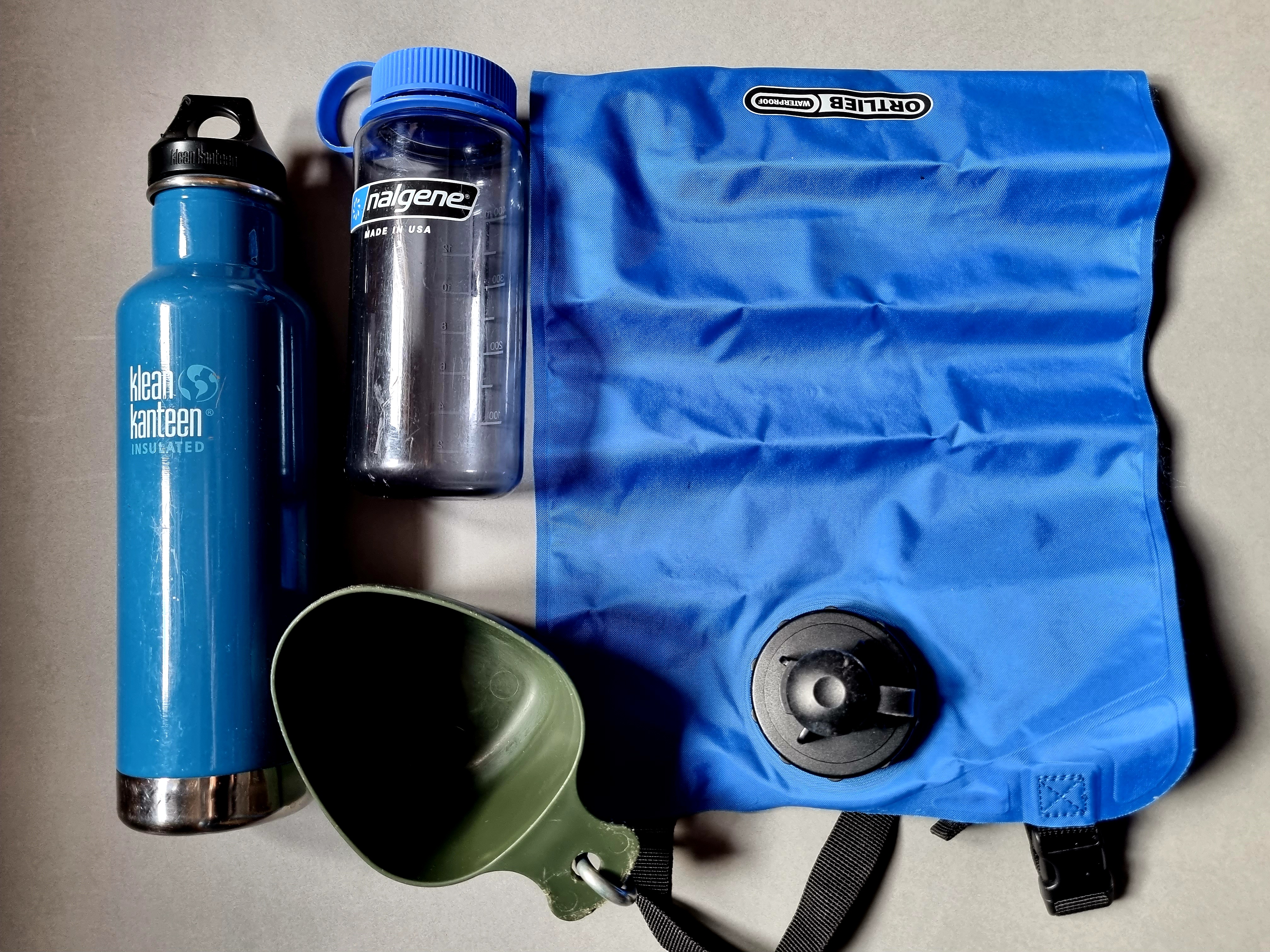 - Auf grösseren Touren führe ich zusätzlich noch eine Ortlieb 10 Liter Wassersack mit.