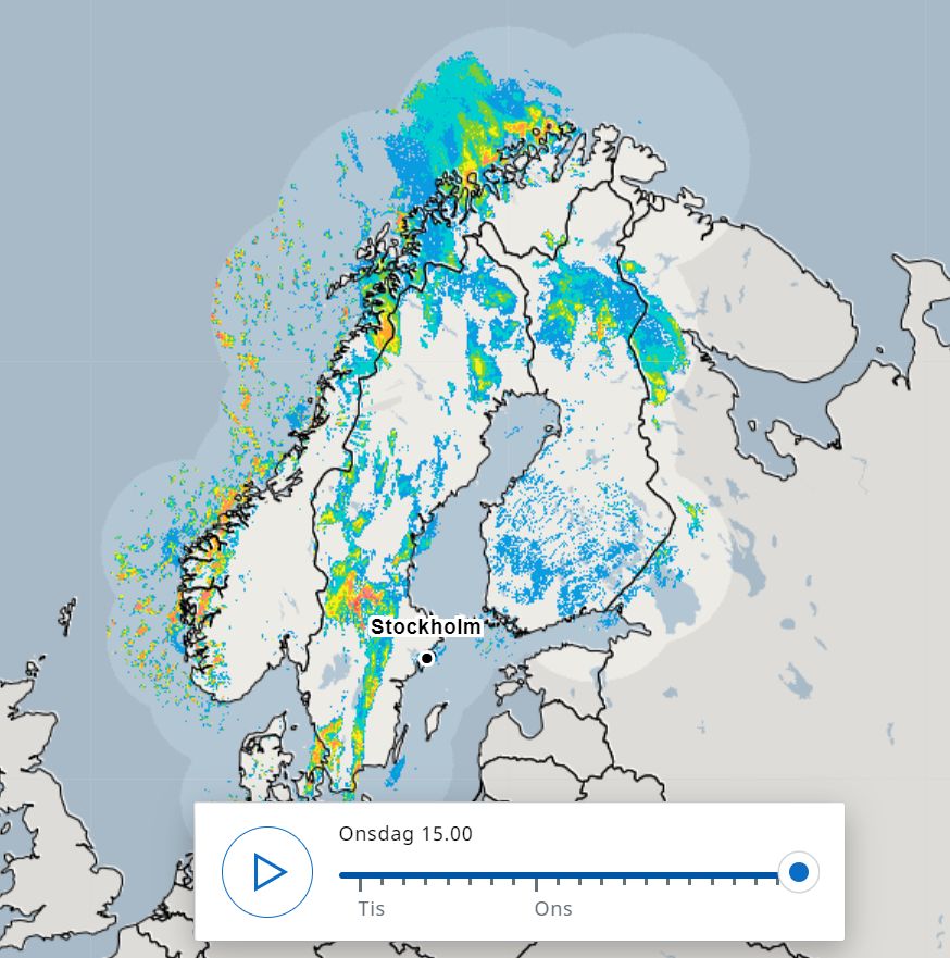 Für den Norden Europas empfehle ich immer das Wetterradar des schwedisch, meteorologischen Instituts SMHI, das mit seiner Darstellung ganz Skandinavien einschliesst und eine hohe Verlässlichkeit hat.