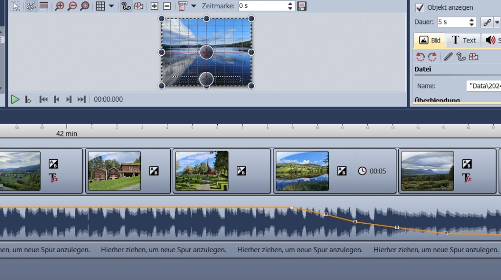 Auch die Überblendungen müssen gut überdacht werden. Zum Beispiel ein zu hektisches überblenden von Landschaftsbildern kann die Stimmung negativ beeinträchtigen. Und immer im Hinterkopf steht die Uhr und die Zeit.