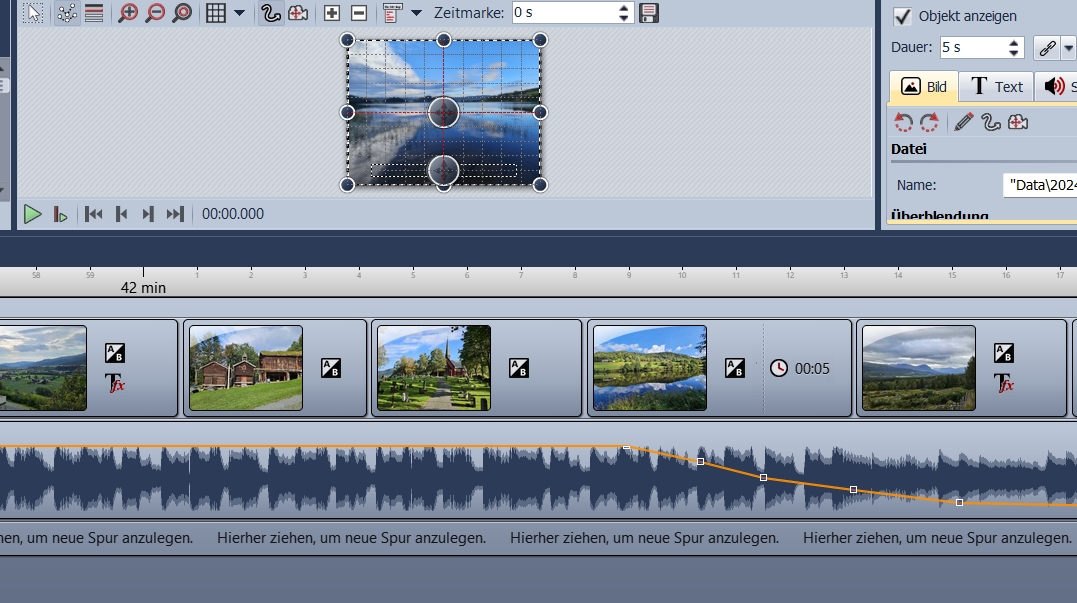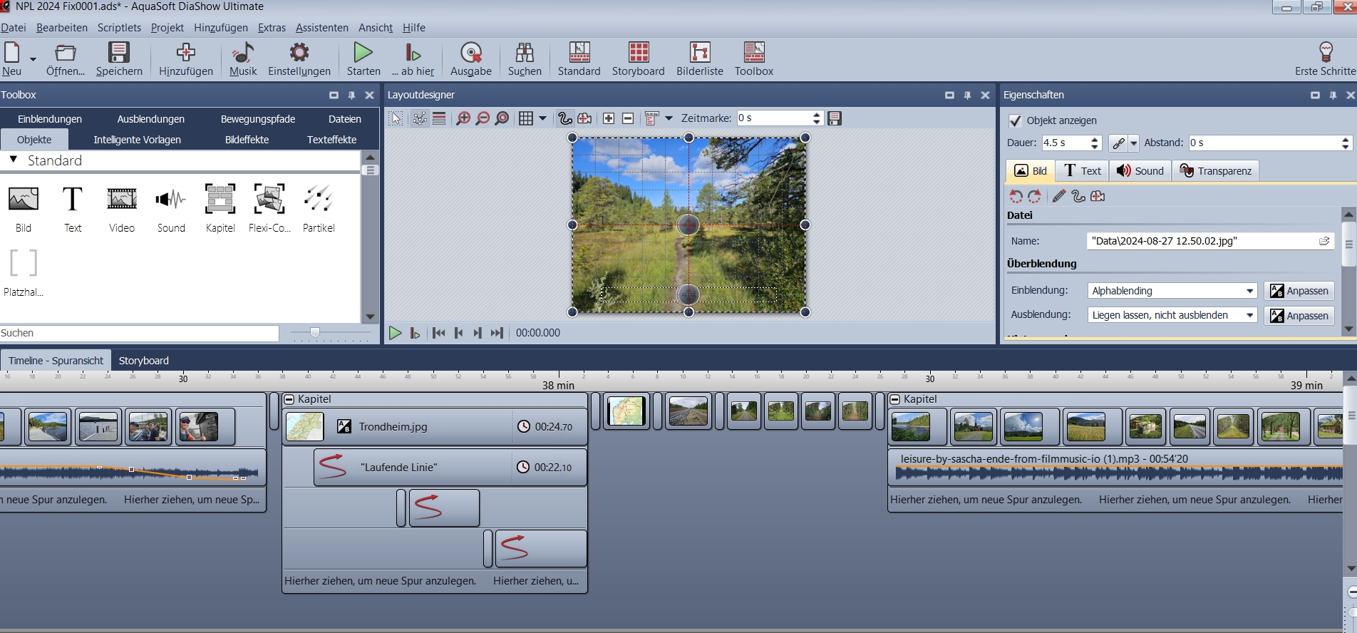 Auch die Überblendungen müssen gut überdacht werden. Zum Beispiel ein zu hektisches überblenden von Landschaftsbildern kann die Stimmung negativ beeinträchtigen. Und immer im Hinterkopf steht die Uhr und die Zeit.